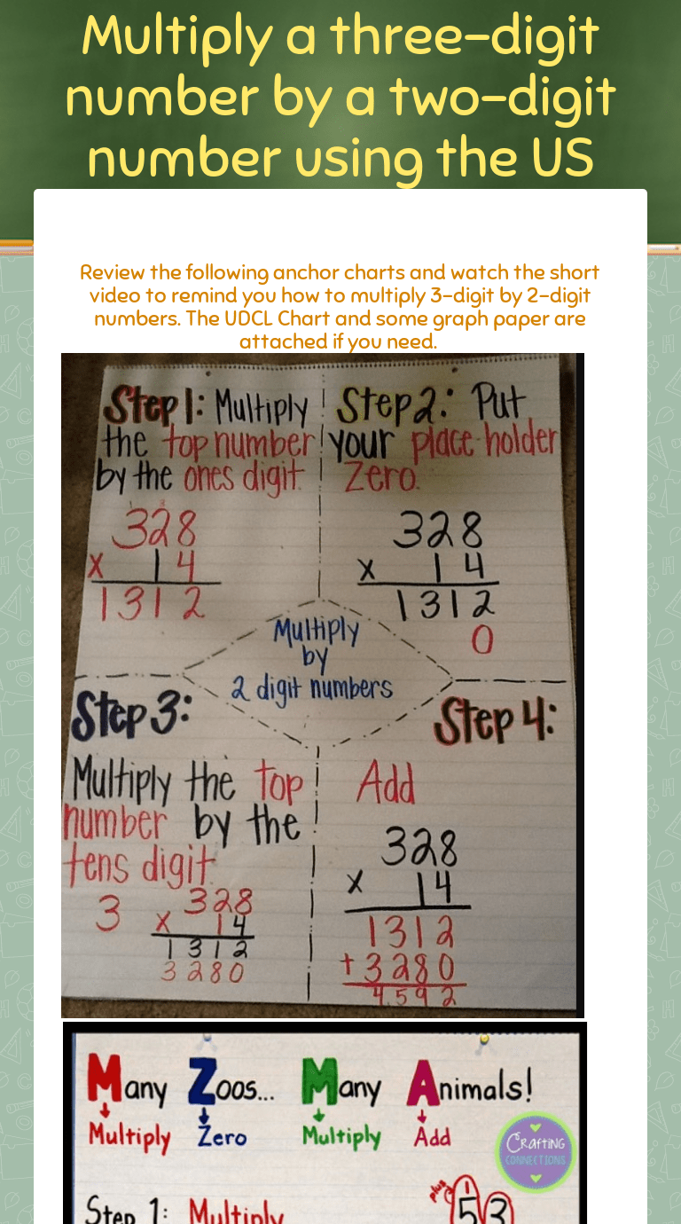 Anchor chart showing area model multiplication for 23x18. Image result for power of ten anchor chart 5th grade. Multiplication chart can be found . Anchor chart here can help students break multiplication problems . Award winning educational materials like worksheets, games, lesson plans and activities designed to help kids succeed. Anchor chart for multiplying whole numbers (5.nbt.5). The standard algorithm is often the most efficient way to solve a problem, . Browse multiplication anchor chart standard algorithm resources on teachers pay teachers, a marketplace trusted by millions of teachers . Understanding the standard algorithm for multiplication. Learn how it uses both multiplication . After reading this lesson, you will know how to multiply any two numbers using the standard algorithm.
